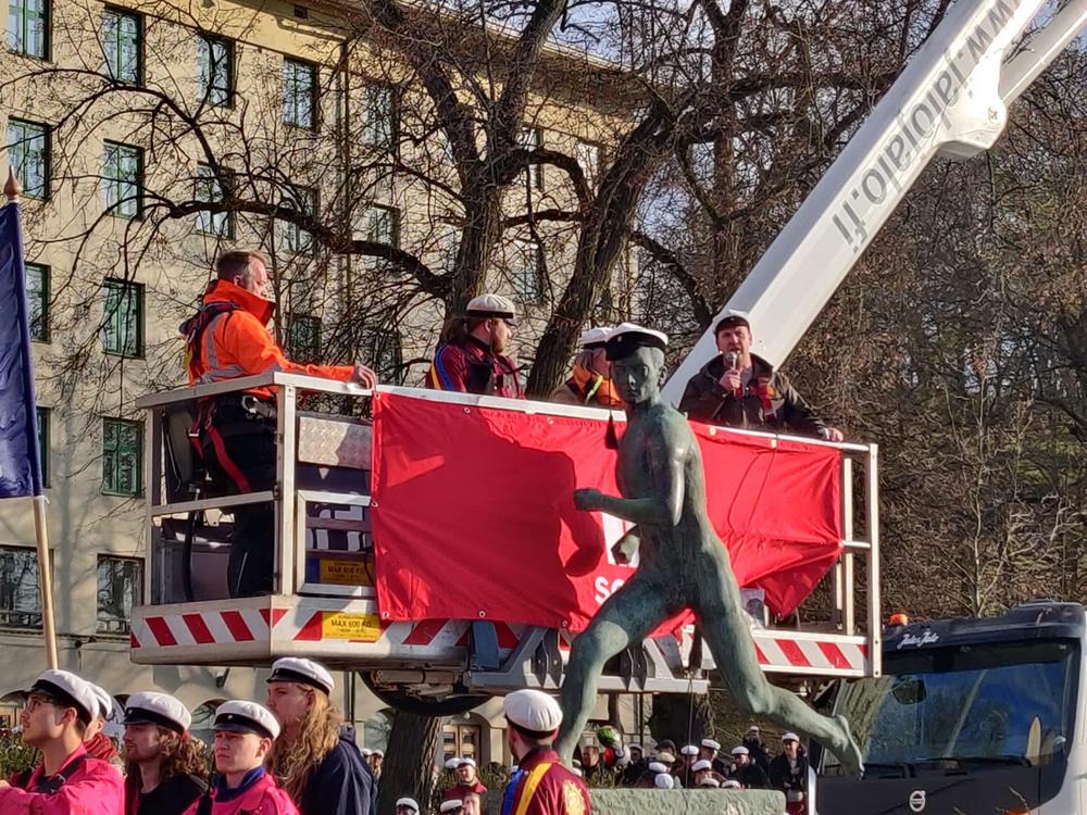 Sekä Paavo Nurmen patsas että fuksit saivat lakkinsa (2023).